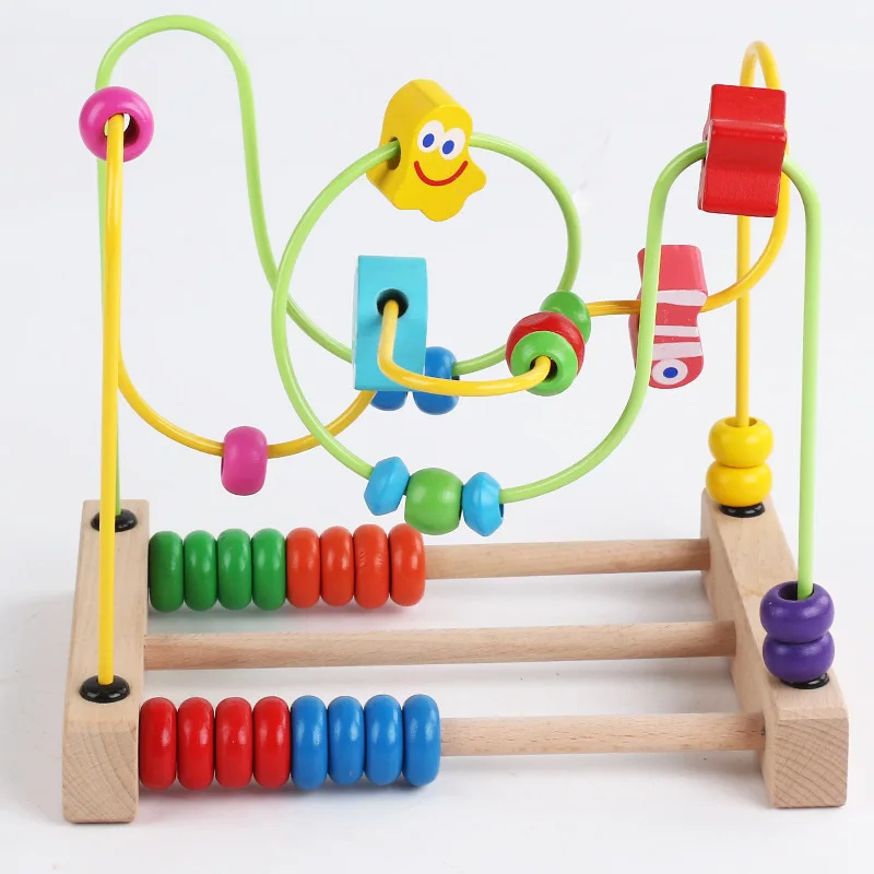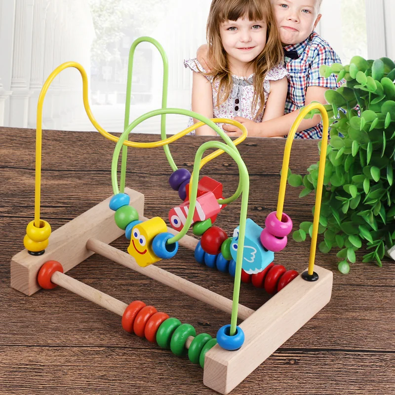 TOP Infants Children Baby Wood Oceans Bead-stringing Toy Building Blocks Bead Toy Multi-functional Earl