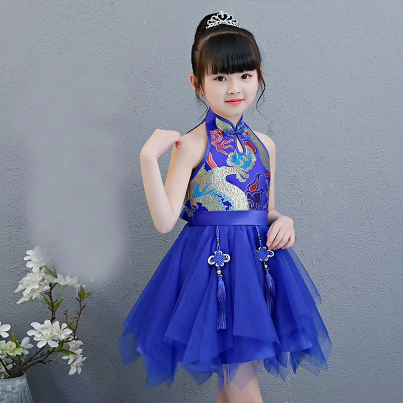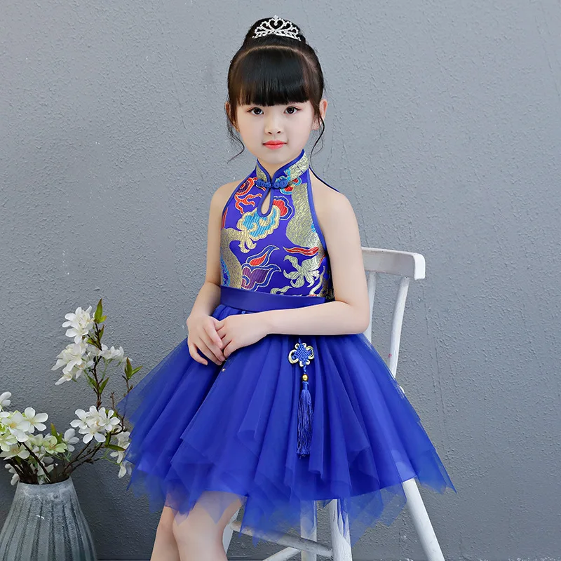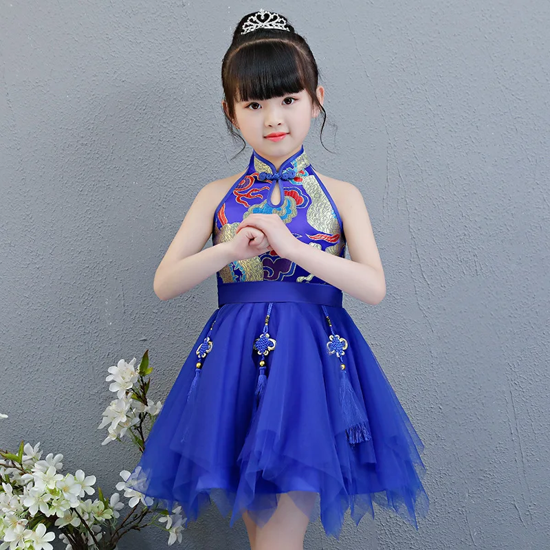 Kids Baby Girls clothes Princess Mandarin Collar sleeveless cheong-sam Chinese Style casual Party D