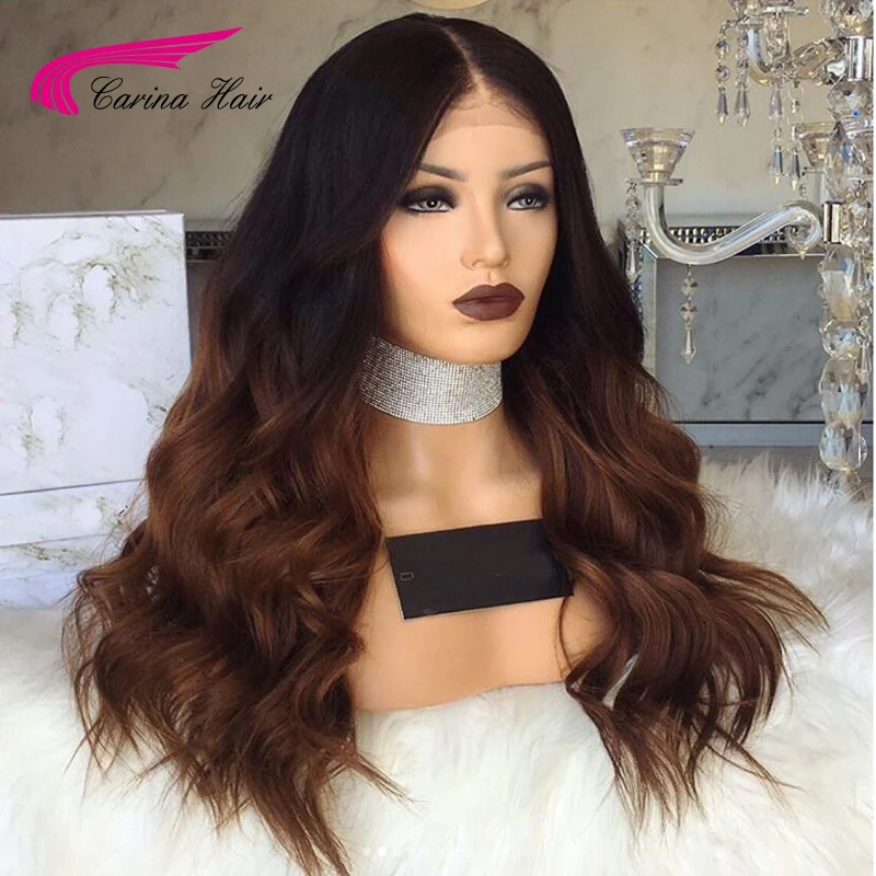 HOT SALE Carina Body Wave Lace Front Wigs with Baby Hair Remy Human Hair Wigs Pre-plucked Hairline Ombre Col