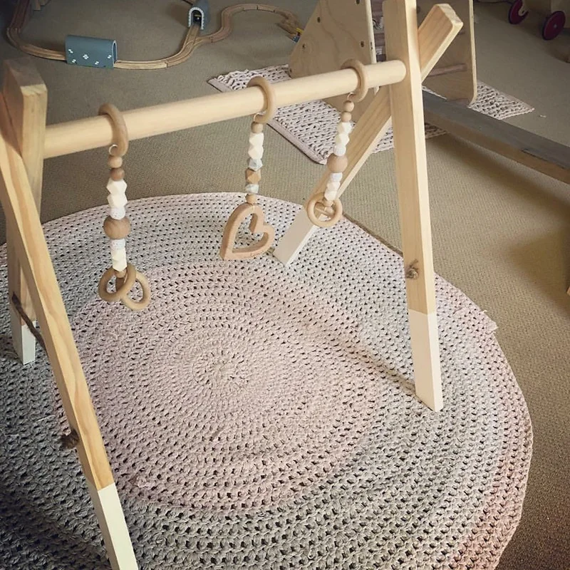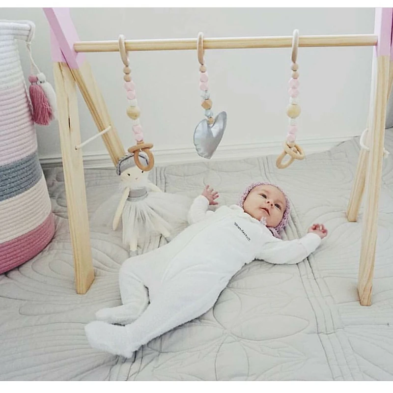 Wooden Baby Activity Gym Frame With Mobiles Newborn Baby Room Decoration Early Education Toys Photo